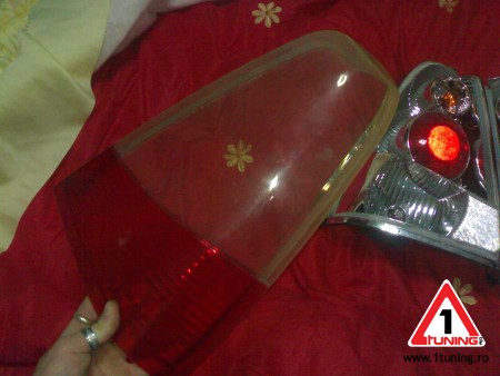 Se poate da jos.E lipit acolo prin topire.Bagi lama de la cutit intre plasticu ala,ca defapt e plastic geamu de la far,si ridici incet incet din fiecare parte.Dar dupa ce el dai jos,vezi s ale lipesti bine sa nu ti se abureasca pe interior!